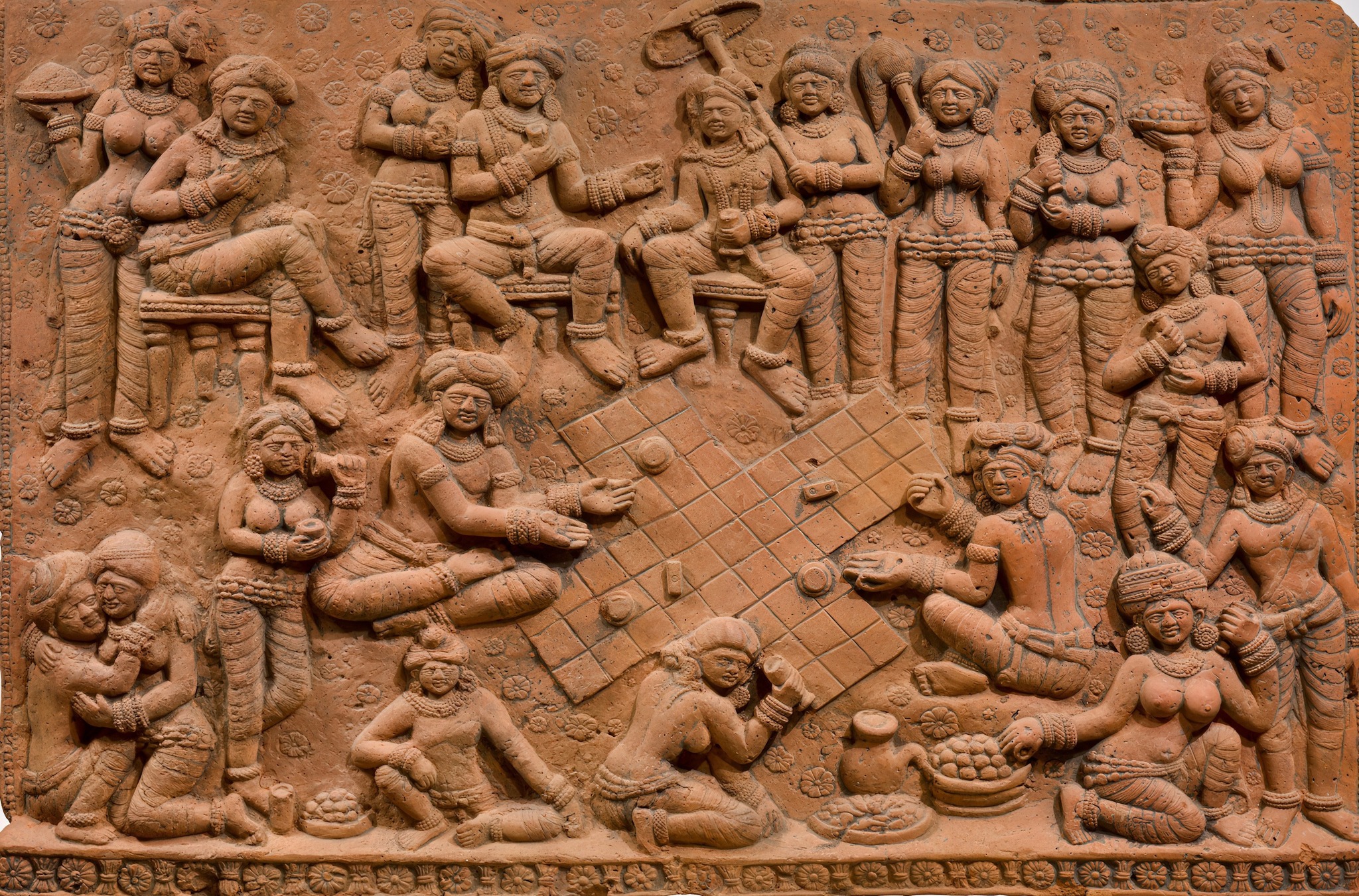 Bengal’s historical affinity for terracotta art persists, with regions like Purulia, Bankura, Birbhum, Paschim Medinipur, and Bardhaman serving as hubs for globally traded terracotta crafts. Chandraketugarh’s excavated terracotta artifacts, including children’s toys, figures of gods and goddesses, narrative plaques, and more, are noteworthy. Particularly intriguing are depictions of sexual scenes (Mithuna) and amorous couples (Dampati).