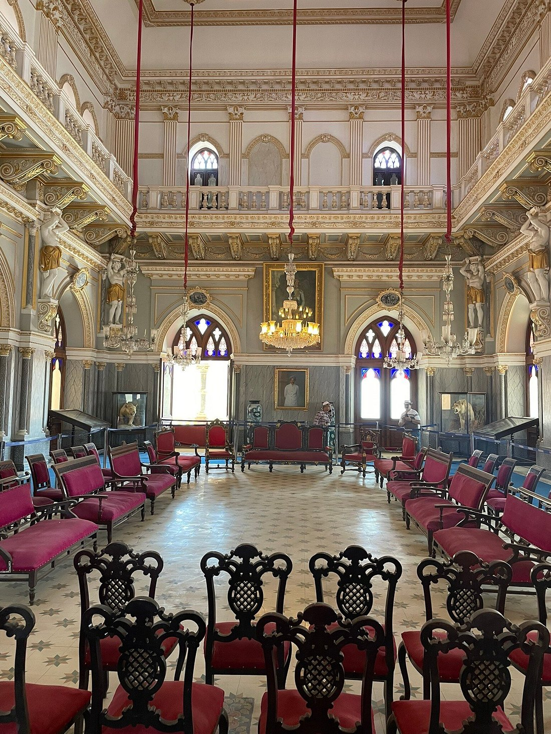 The main hall presents preserved animal skins mounted in lifelike poses, a Victorian-era practice that offers insights into royal hunting traditions and 19th-century taxidermy. The Durbar Hall creates a more elegant atmosphere with glittering chandeliers and classical statues that once witnessed royal gatherings and state ceremonies.