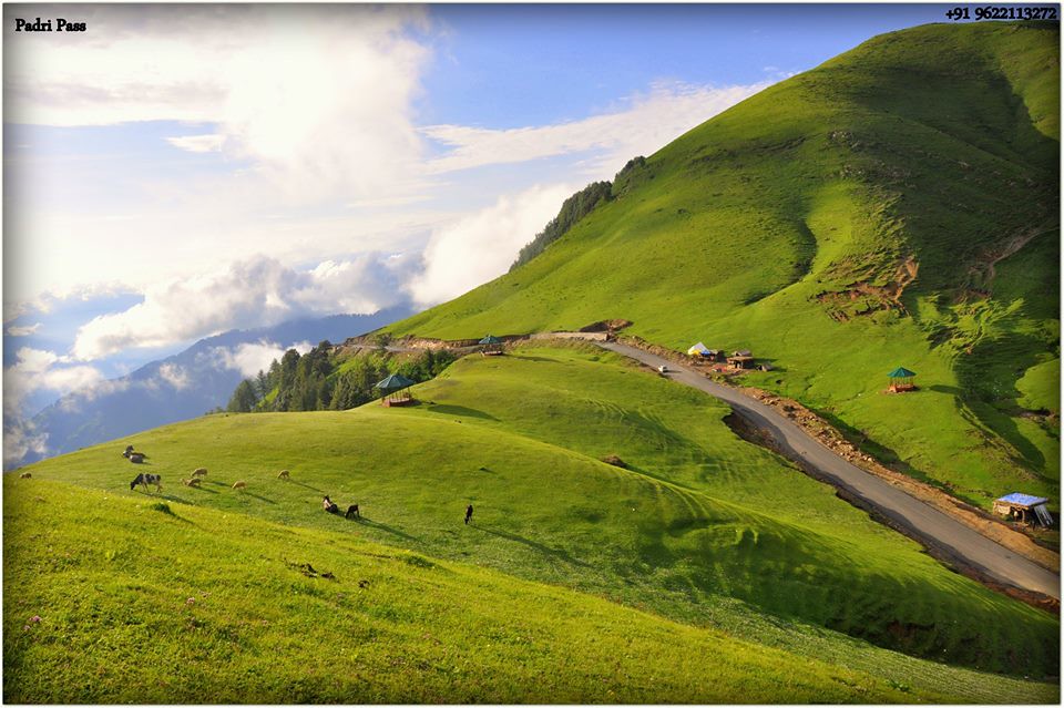 At an elevation of 3,300 meters (10,800 feet), the Padri pass offers breathtaking panoramic views of the Dhauladhar and Pir Panjal ranges, alpine meadows, and wildflowers. From here, Bhaderwah in Jammu & Kashmir is just 40 km.